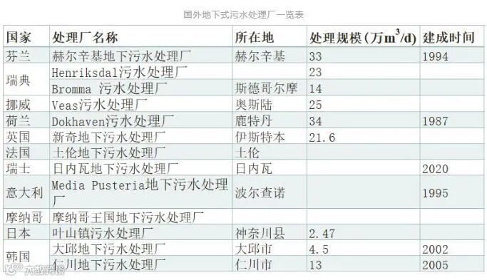 目前,世界上10多个国家稳定运行的地下式污水处理厂有200余座,其中以芬兰、瑞典、韩国、日本等国家应用最多。