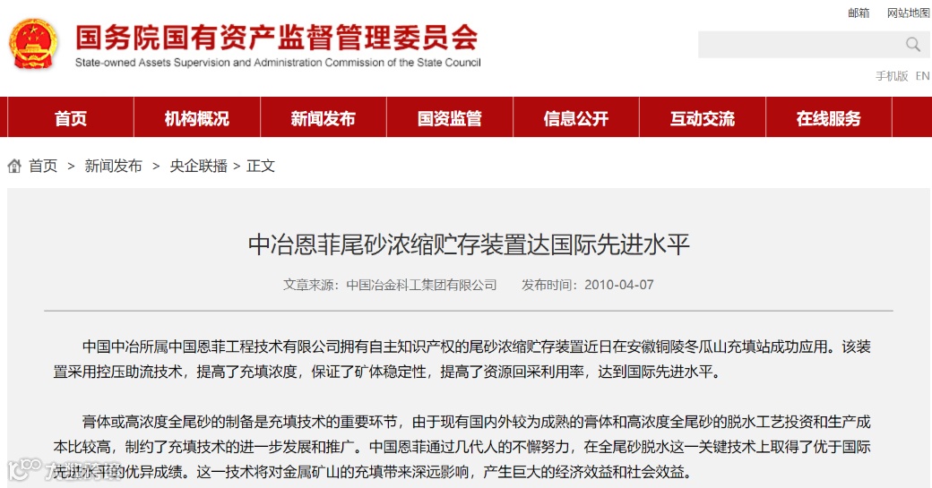 中国恩菲目前承揽的矿山充填和尾矿工程数十个,涉及有色金属、钢铁、煤炭、化工、核工业等行业,项目实施效果受到业主的广泛赞誉和好评。