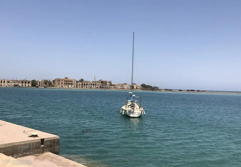 无边无际的海岸线上看不到忙碌的船只,只有孤舟衬托出红海的广阔,