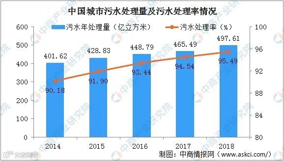 目前,我国水处理已经形成完整的产业链,形成了成熟的污水处理工艺,污水处理率持续提升。2014年污水处理率90.18%,2018年达到95.49%。随着污水处理技术进步,预计我国污水处理率将进一步提升。