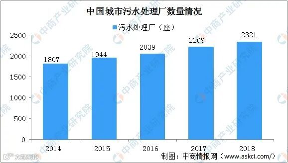 目前我国工业废水排出以后基本进入城市污水管道,在城市污水处理厂进行处理。据《2018年城市建设统计年鉴》,2014年污水处理厂数量1807座,2016年污水处理厂突破2000座,2018年污水处理厂数量进一步增加达到2321座。