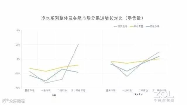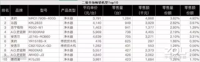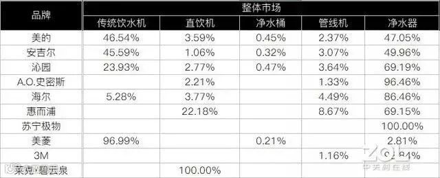 ZDC总结:市场转型已经基本完成,净饮水市场中存在着两类品牌,一类是如美的、安吉尔等,之前在饮水机市场中就占据了相当份额,通过新产品的扩充来扩大自己的利润收益;另一类如A.O.史密斯,专注于净水器市场,利润率更高。