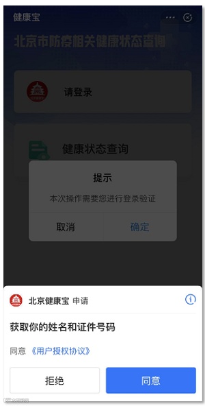 (2)点击“同意”授权小程序使用您的姓名和身份证号。(仅限于首次登录用户)