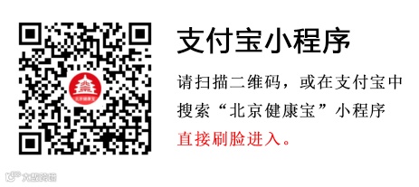 (1)开支付宝,搜索“北京健康宝”小程序或扫描下方二维码进入小程序。