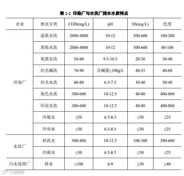 印染工业集聚区各企业的排水水质特点及污水处理厂达标排放指标见表 2-2 所示: