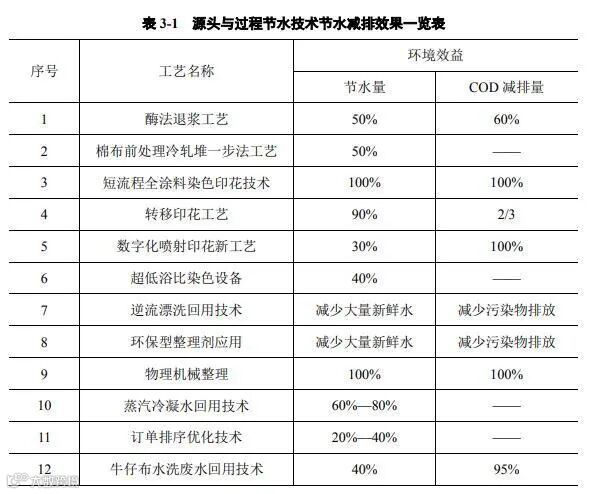 印染工业集中区源头与过程节水技术节水减排效果见表 3-1: