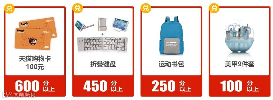 凡到场观众可凭积分兑换礼品,100积分可兑换美甲九件套,250积分可兑换运动书包,450积分可兑换折叠键盘,600积分可兑换天猫购物卡。