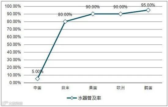但说到底,我国净水行业仍处于发展的初期阶段,相较于欧美、日本等国家高达80%的净水器普及率,我国净水器普及率不足10%,还有很大的发展空间。