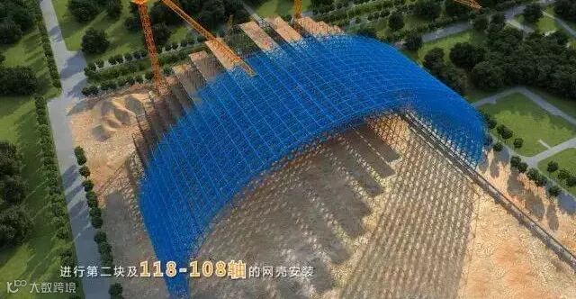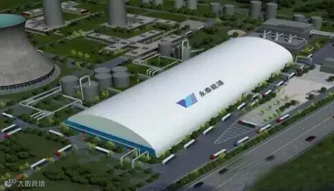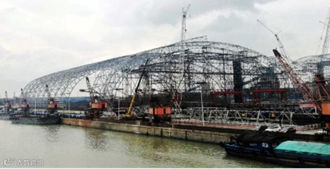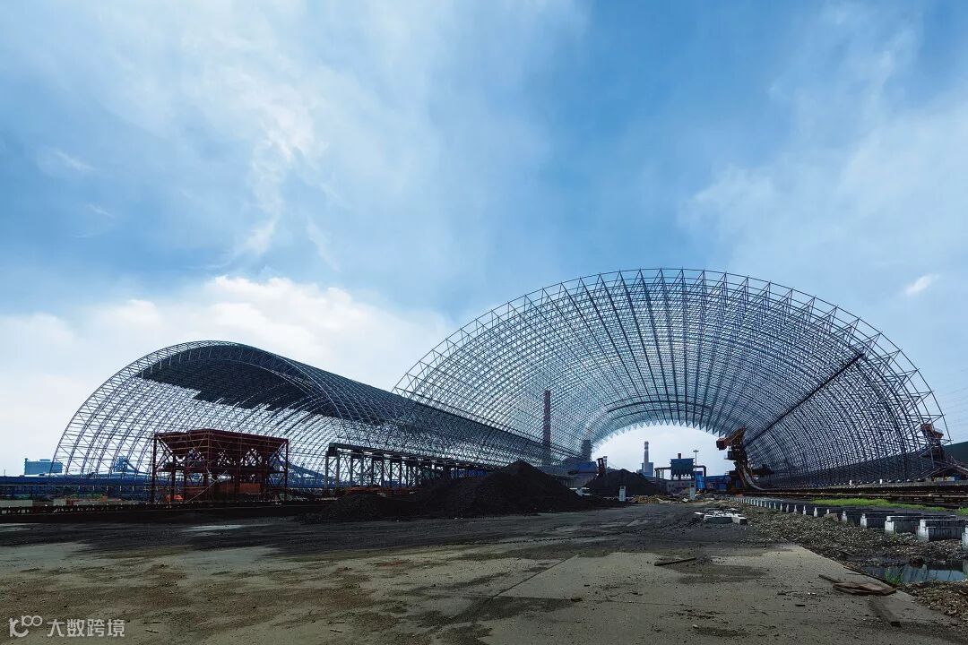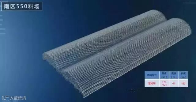 ▲中天钢铁厂175m跨度的预应力管桁架结构料棚