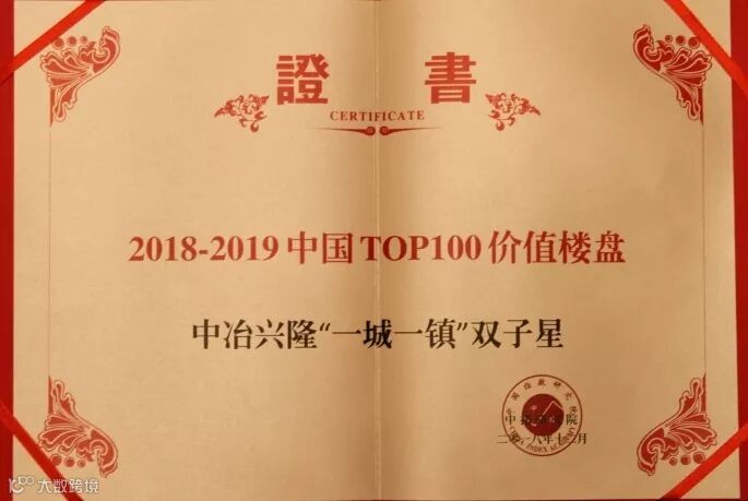 中冶置业“一城一镇”双子星斩获中国TOP100价值楼盘等荣誉