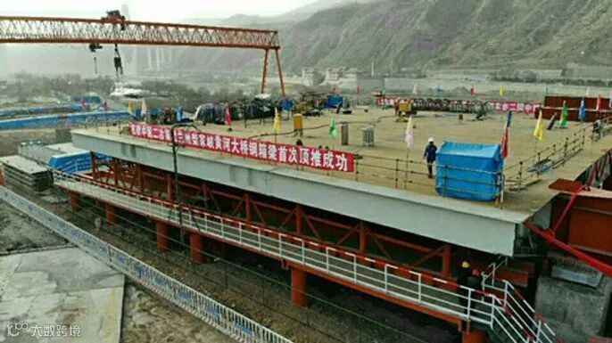 中国二冶兰州柴家峡黄河大桥工程钢箱梁首次顶推成功