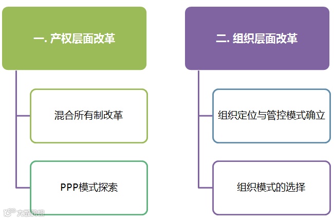 水务企业体制的改革总体包括两大方面:一是产权层面改革,二是组织体制改革。