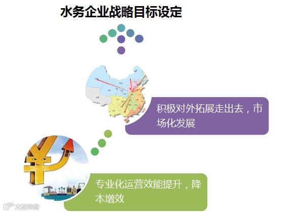 笔者认为,水务企业本质上还是企业,具有企业的共同诉求。首先一定要确定自身追求的目标。像深圳水务集团,在特区宽松的政策条件下,很早就制定了走出去的发展方向。对于大部分水务企业来讲,如何提升专业化运营效能,达到降本增效的目的,如何通过管理服务的改善获取客户满意度的不断提升,如何最大化利用政府资源扩大业务规模、扩张业务类型,可能是他们中短时期内追求的目标。