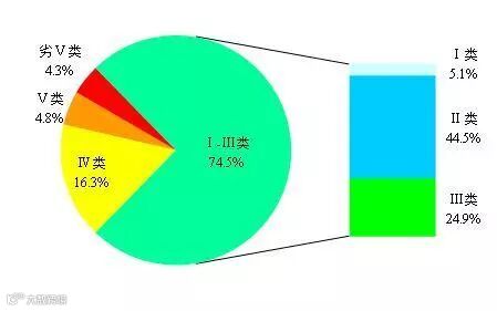 2019年1-6月,1940个国家地表水评价断面中,水质优良(Ⅰ-Ⅲ类)断面比例为74.5%,同比上升4.4个百分点;劣Ⅴ类断面比例为4.3%,同比下降2.6个百分点。主要污染指标为化学需氧量、总磷和氨氮。