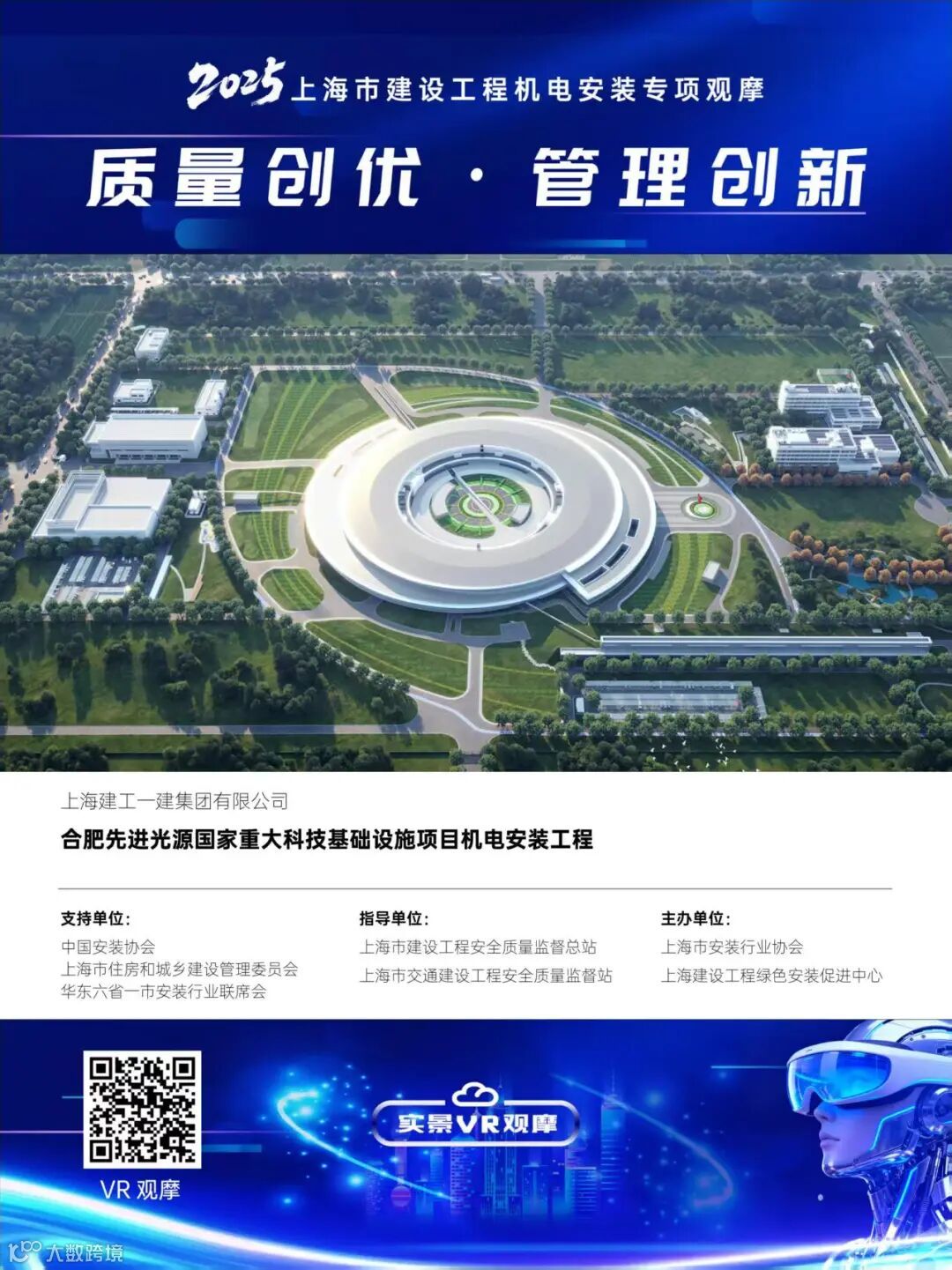 9月23日,上海市安装行业协会、上海建设工程绿色安装促进中心联合开展“质量创优· 管理创新”——2025上海市建设工程机电安装专项观摩。一建集团总承包的合肥先进光源国家重大科技基础设施项目机电工程作为本次9个观摩工程之一,以“VR云观摩”的形式,展示了集团在大科学装置基础设施建设的前沿技术,共吸引6.2万人次云观摩,受到了业内专家的高度评价。