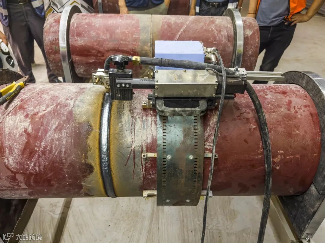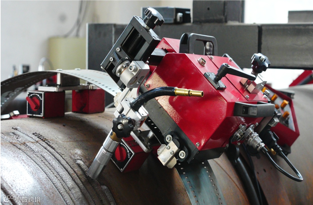 机电安装工程中,空调机房与空调水管道主干线都以大口径埋弧焊钢管为主,因其表面存在螺旋焊缝凸起,磁吸焊接机器人无法在管道表面行走。若使用传统手工焊接方式,焊接难度较大、焊接效率较低、焊接质量较差,且存在一定的安全隐患。