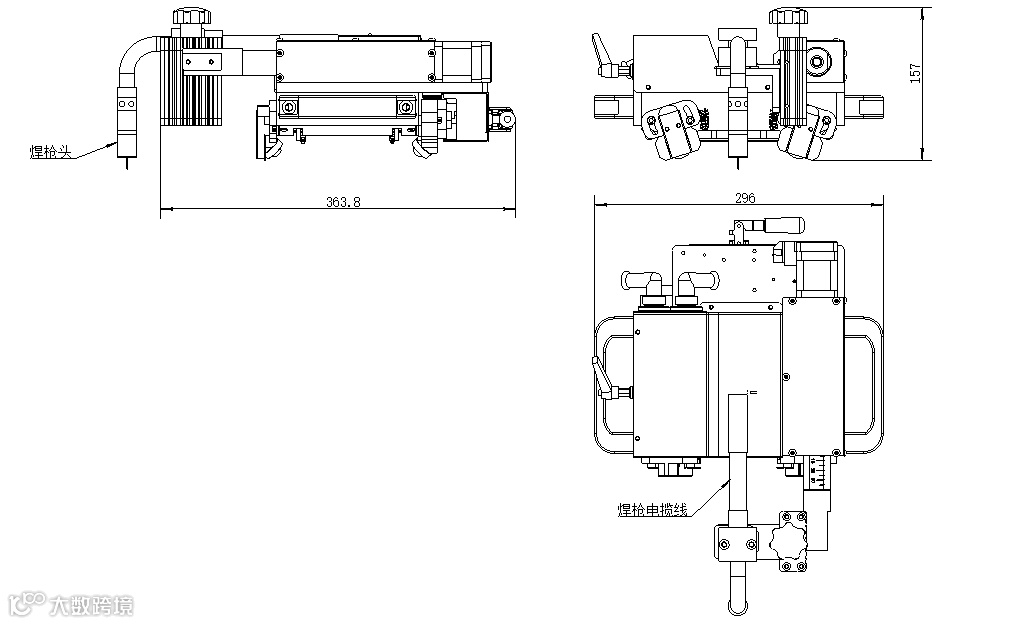 考虑到焊接机器人使用配件多、较零散,研发团队设计出“一体式推车”,将焊接机器人本体、附属零配件“化零为整”;对气瓶进行轻量化、小型化升级,并在推车外单独设置混合气瓶固定点,大幅提升了运输灵活性、使用便捷性和安全性。