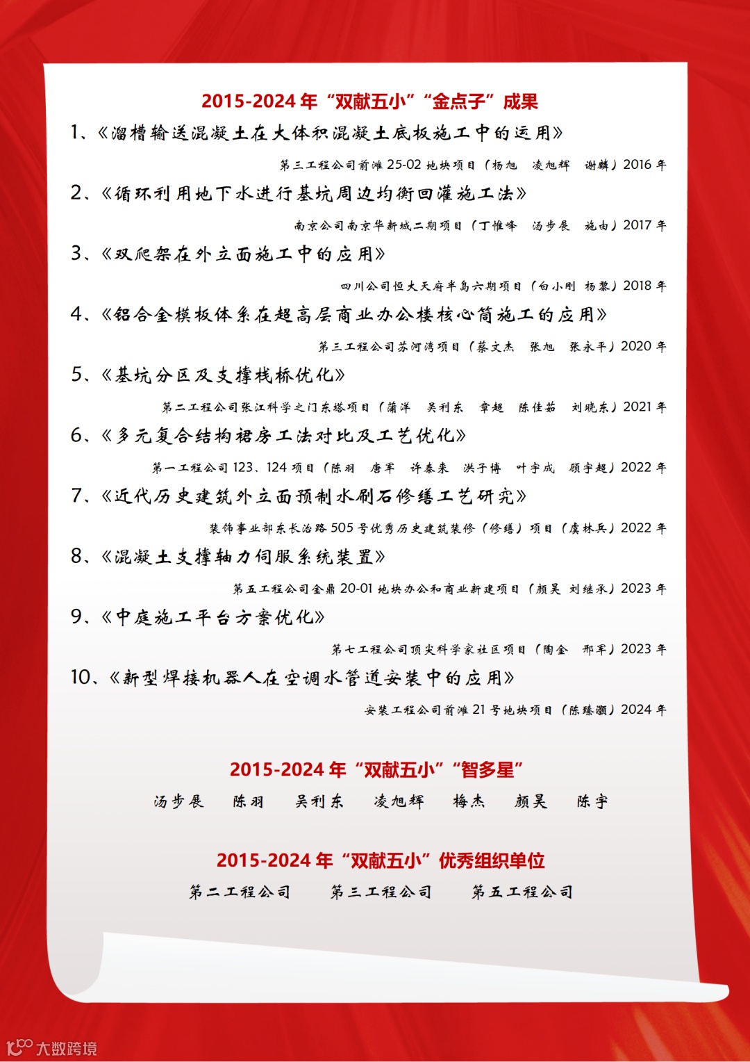 今年,共收到来自各基层单位的项目管理成果44个、QC成果40个、“双献五小”成果50个,各相关部门分别组织专家评审,选出优秀成果。本次发布会将各优秀成果融合为品质管控、城市更新、新兴领域、智能建造、绿色低碳等五个板块,以跨单位、跨项目的方式进行综合发布,最终由现场投票产生“最佳发布团队奖”。