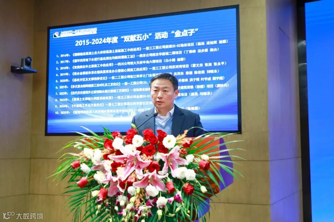 12月4日,一建集团召开“双献五小”活动三十周年表彰会暨2025年度成果发布会。集团党委副书记、总裁赵兴波,党委副书记、工会主席郑琼,建工集团副总工程师、一建集团总工程师朱毅敏等领导出席,集团总部相关部门和条线负责人,各基层单位行政分管领导、工会主席、各优秀成果发布人及获奖代表等100余人参加会议。
