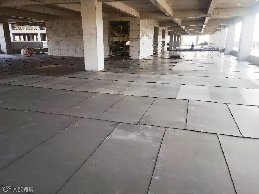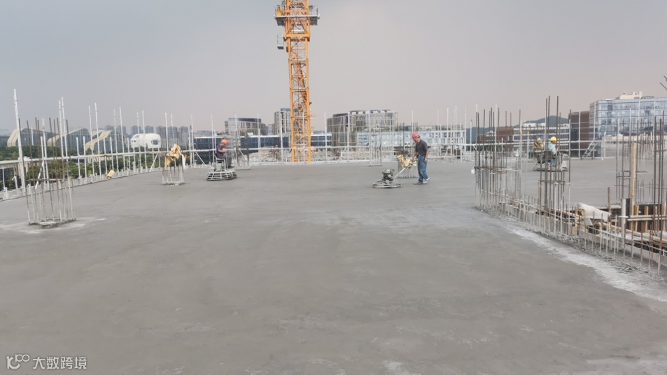本项目楼地面采用金刚砂地坪一体成型绿色施工技术,具有美观、耐磨、耐冲击、不起砂、少开裂等优点,但受露天作业环境影响较大。项目团队通过优化叠合板的桁架筋方向与主次梁钢筋堆叠标高、根据季节和气温动态调整金刚砂施工及切缝时间、结构施工中地坪保护板全覆盖等方式,显著减小了环境对一体成型地坪的影响,保证了成型质量及美观效果。