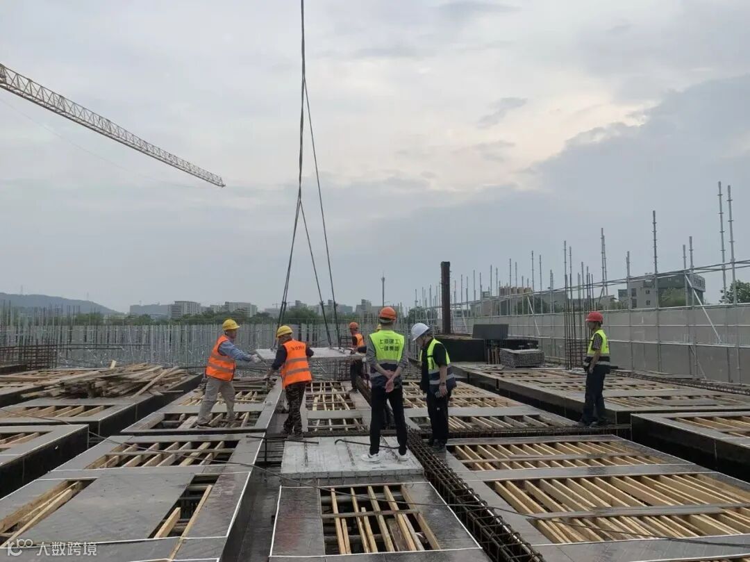 项目基坑面积7万余平方米,底板被54根后浇带分为34个分区,数量众多的后浇带对上部结构大量预制PC楼板施工带来不利影响。对此,项目团队通过膨胀加强带、跳仓法施工相结合的方式,取代了约52%的传统后浇带,增强了结构的整体性和抗裂性,还减少了清理及安装止水钢板等施工工序,为项目整体高效建造提供了有力支撑。