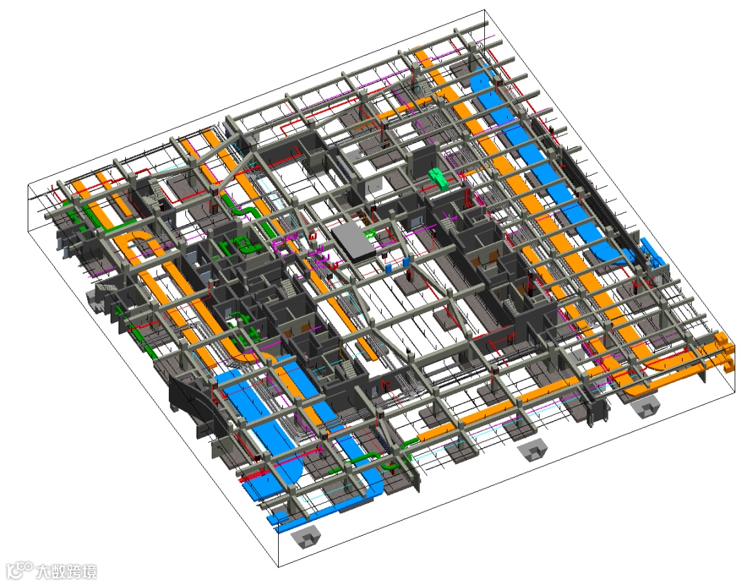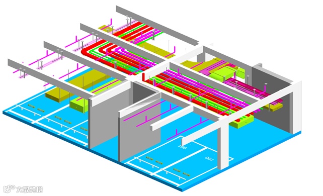项目部创新运用BIM技术优化机电设计,以满足专业管线的预控与安装需求,有效减少返工、缩短工期,提升了经济效益。尤其是在管线密集的地下室、消防泵房、生活泵房及进排风机房等关键区域,通过三维建模和碰撞检测,对空间狭小、管线密集、净高要求高的区域做出精准判断,对不满足净高要求和精装要求的区域进行提前优化调整。最终,各专业管线布局合理、错落有致,赢得了业主的认可。