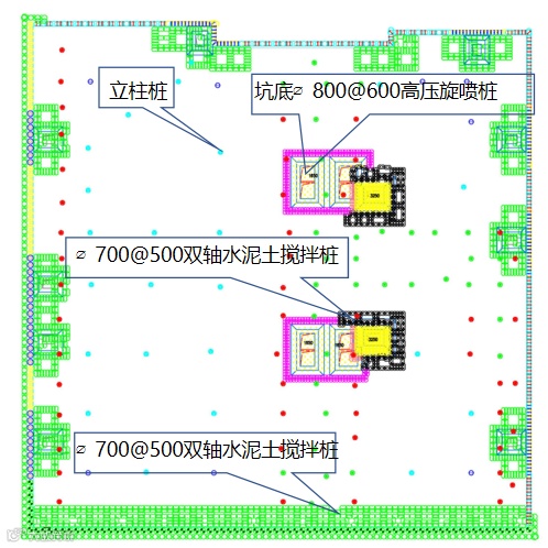项目部充分考虑场地条件,优化施工顺序,采用裙房后做的施工顺序保证场内环路畅通;采用膨胀加强带代替传统后浇带,实现地下室早封闭;采用SMW工法桩+灌注桩支撑技术作为基坑支护,为土方开挖和地下结构施工提供了较大空间,施工便利性较好;拆撑时采用静音切割减少噪音、粉尘和建筑垃圾,节能环保。