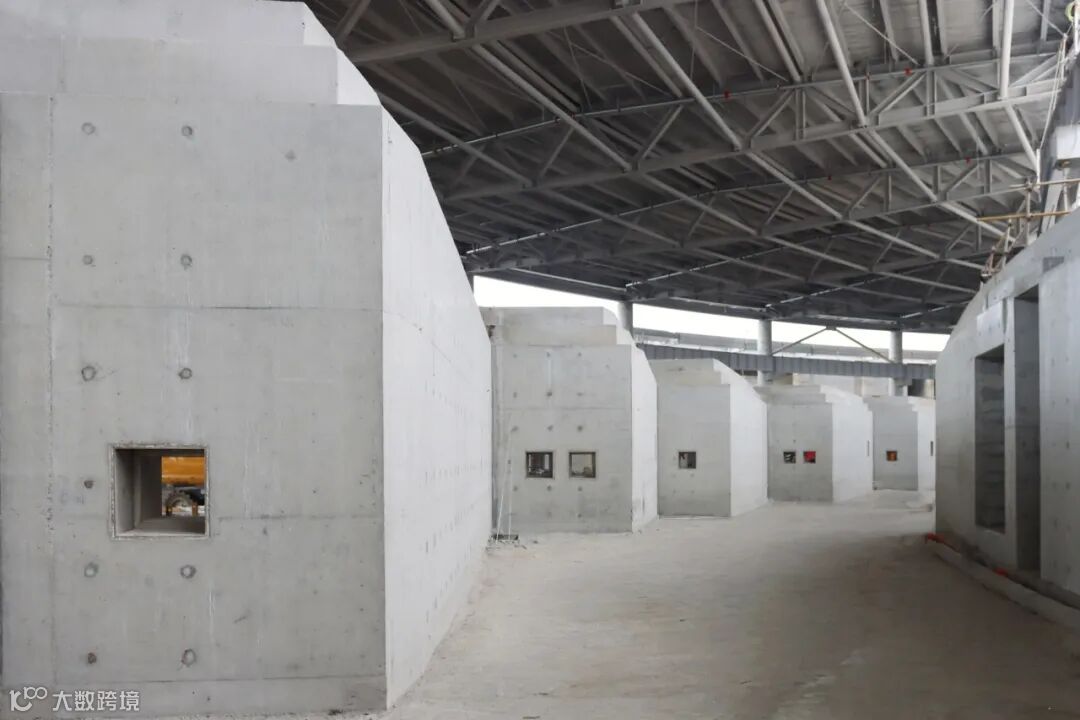 储存环隧道是容纳电子储存束流管及磁铁的核心区域,隧道矩形断面内净高3.5米、内净宽5.8-9.15米,底板厚度1.5米,顶板为多层可开启形式预制板,竖向结构为高度4.4-6米的超厚墙体,最大厚度达2.7米,隧道结构全部采用辐射屏蔽C30混凝土。