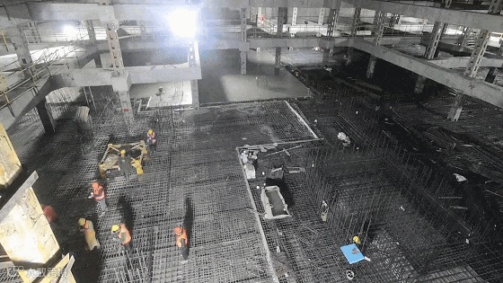 本次完成筑底的B区基坑面积为8542平方米,底板混凝土方量共计7120立方米,分三次浇筑,总浇筑用时68小时。