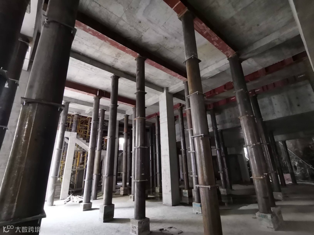 同时,为防止保护建筑平移对C区的区域地库结构可能造成的影响,项目部采用定型化钢支撑对地库顶板进行回顶,采用钢梁对结构梁进行加固,有效防止了开裂,确保了地库结构的整体安全性。