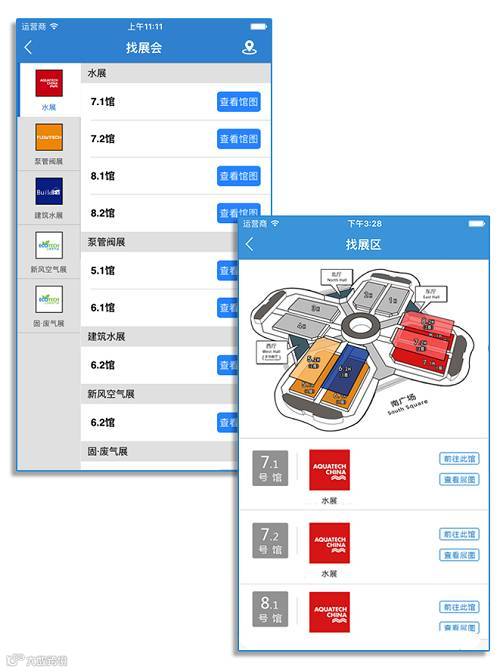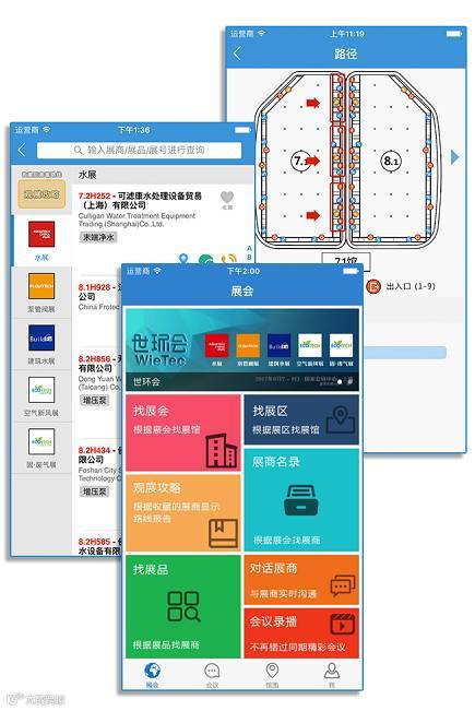 ◆功能一: 根据展会找展馆,定位位置信息,清晰路线图导引,快速准确锁定目标展商。