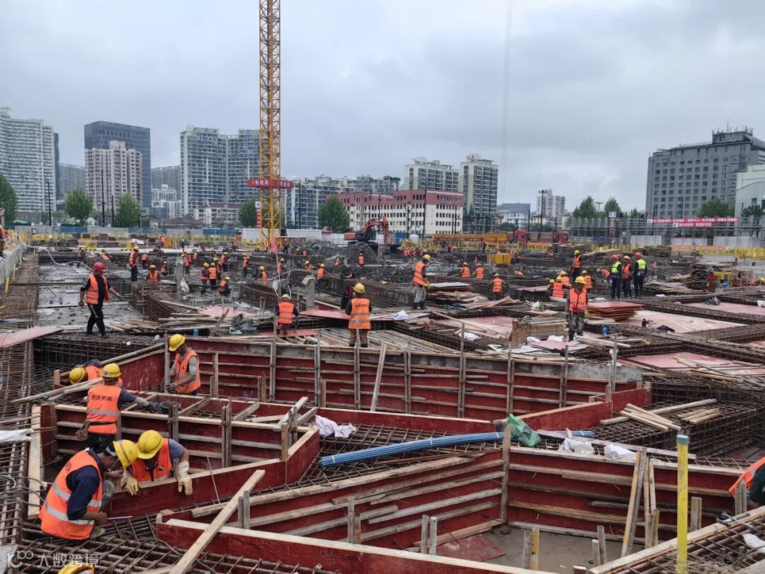 一建集团项目部秉持着上海建工“事不避难,迎难而上,追求卓越”的奋斗者精神,克服了场地作业面受限、连续多日下雨等不利因素,争分夺秒抢进度,精益求精保质量,顺利攻克了B区首道支撑“4.30”节点。