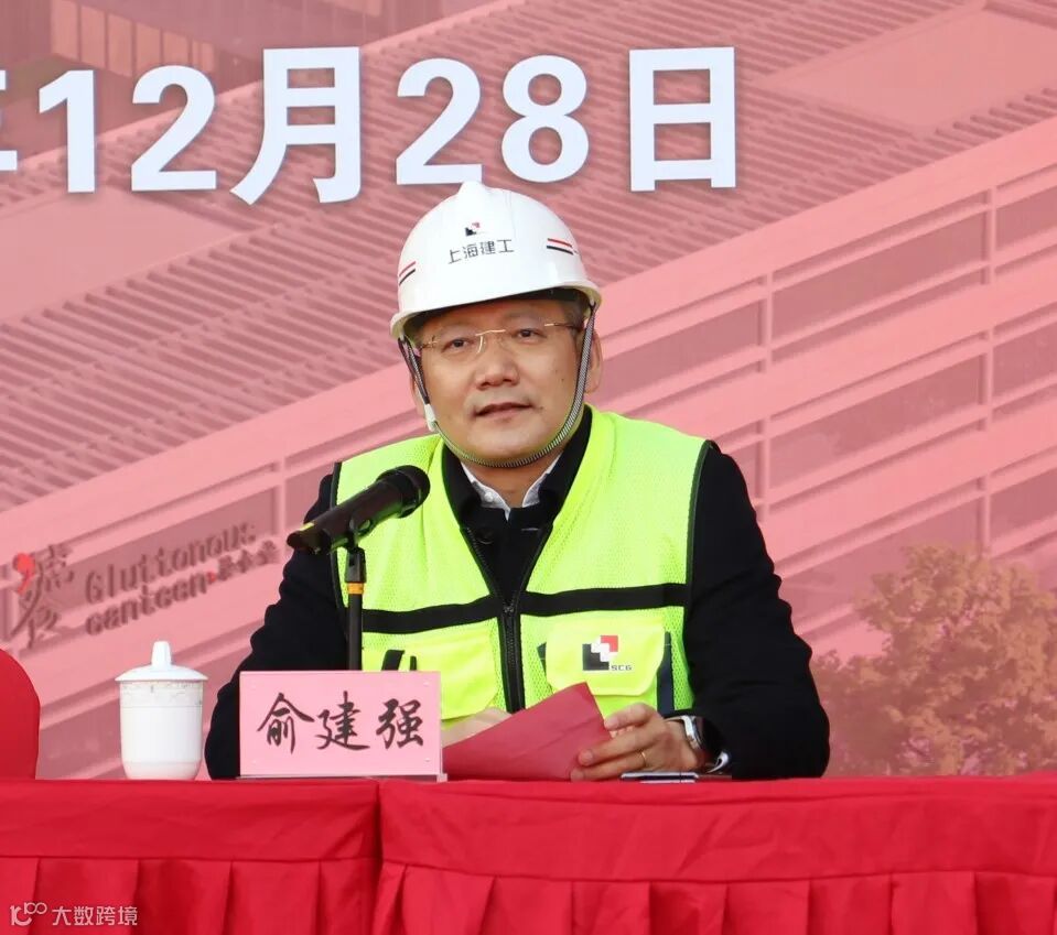 金桥出口加工区开发股份有限公司总经理杜少雄,副总经理毛巧丽,一建集团党委副书记、总裁俞建强,副总裁花力等领导出席封顶仪式,共同见证这一重要时刻。
