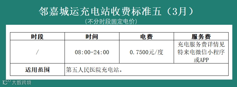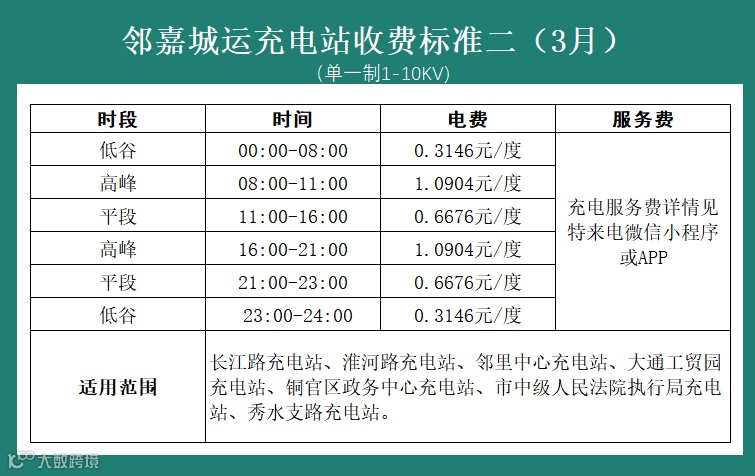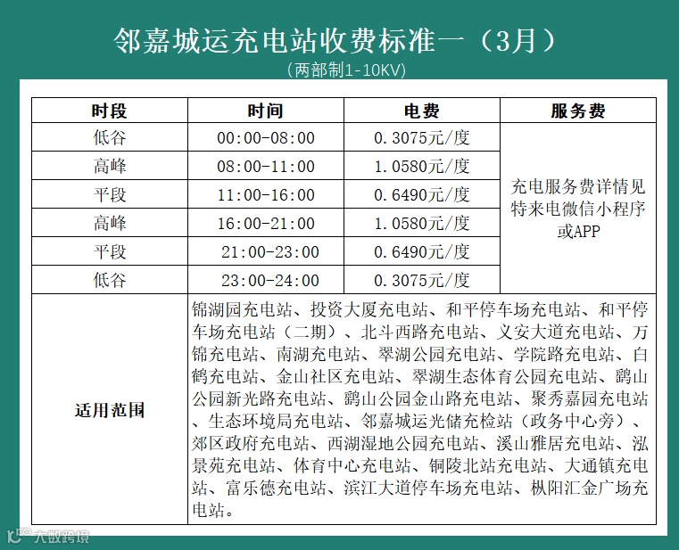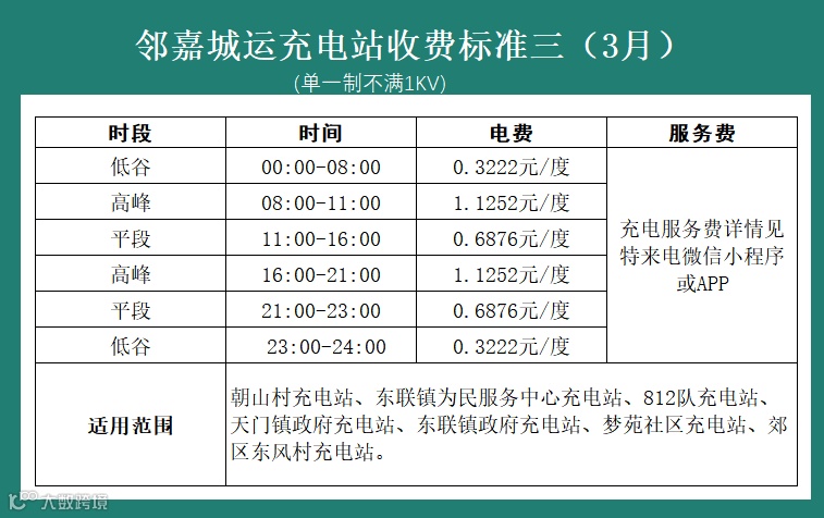 电价公告 | 邻嘉城运充电站2025年3月份电价
