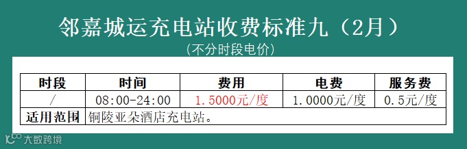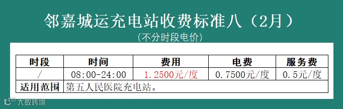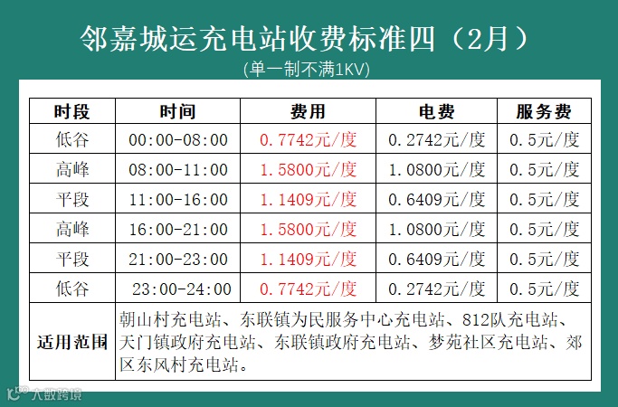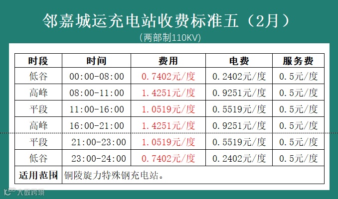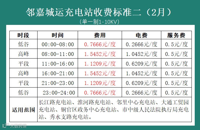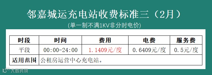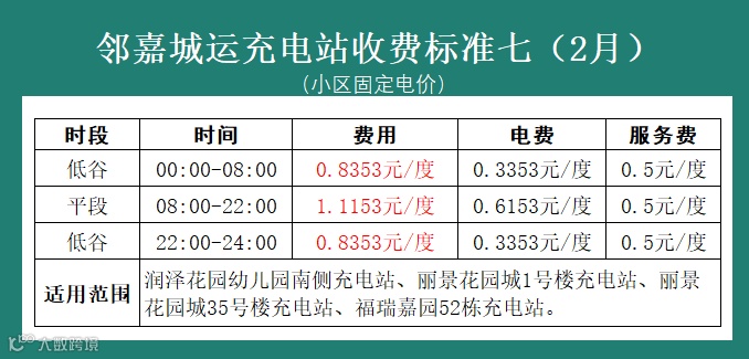 电价公告 | 邻嘉城运充电站2025年2月份电价