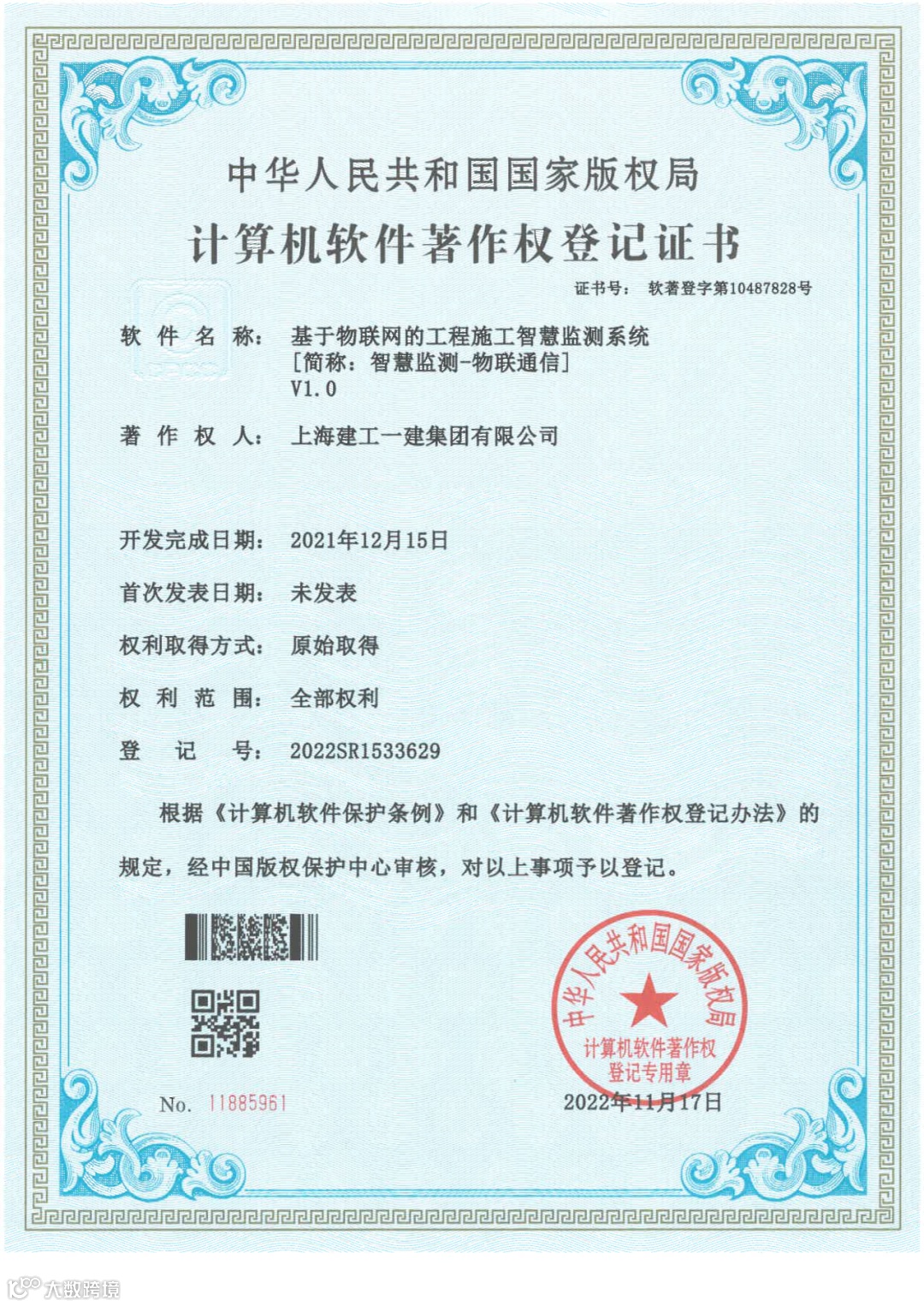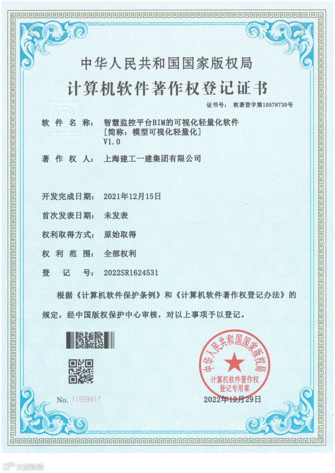 一建集团在新一轮科技革命和产业变革中勇立潮头,不断探索工程项目设计施工一体化、新型超高层建造智能化装备(群)、复杂结构数字化施工、智慧施工监测及风险预警平台、智慧工地管理平台、智慧运维平台等技术在建筑全生命周期的深度应用,并在临港南岛会议中心、宁波中心、金桥壹中心、张江科学之门东塔、世博文化公园双子山、百联西郊购物中心等重大工程中进行推广实践,形成了以授权发明专利和软件著作权等为代表的具有自主知识产权的研究成果。