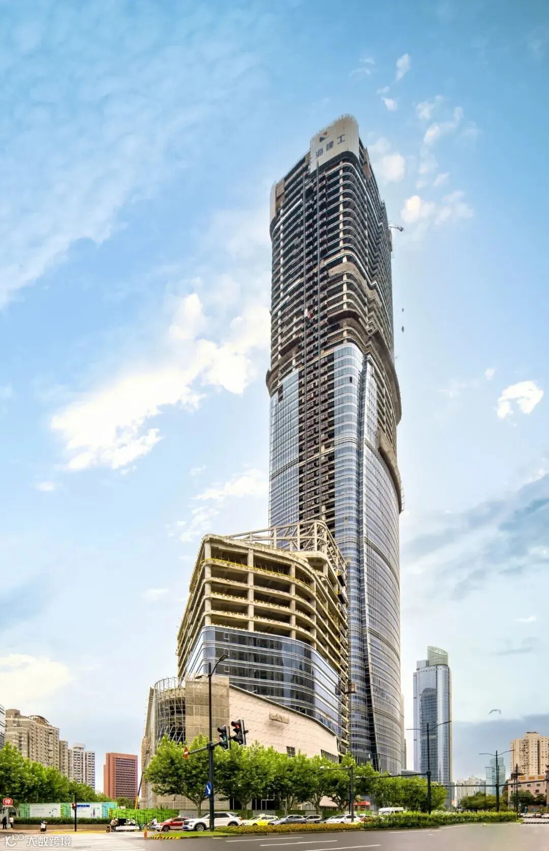 在结构封顶之后,紧跟着将迎来塔冠、幕墙、泛光安装等施工。