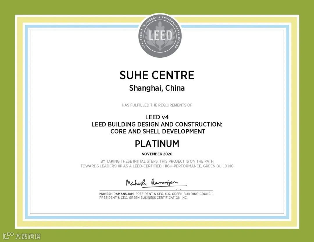目前,苏河湾中心已获得LEED铂金级认证和绿色建筑二星评级。