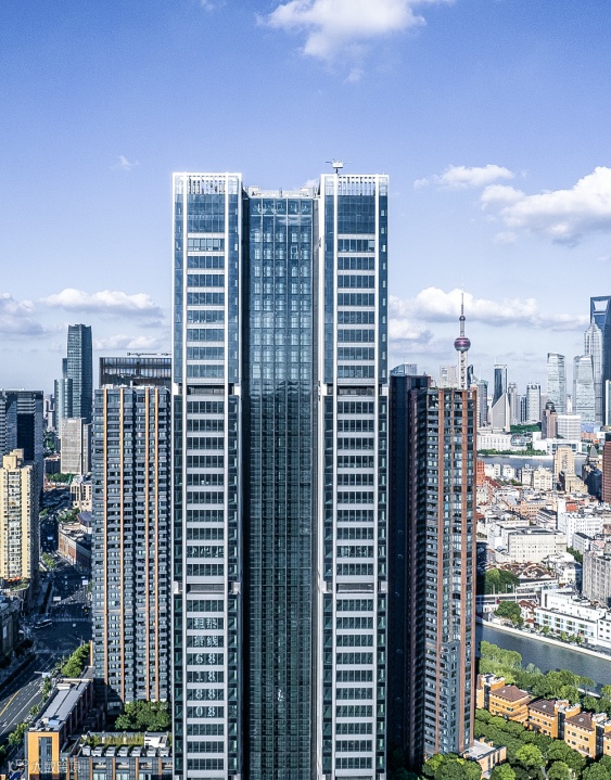 作为苏河湾又一地标建筑,由塔楼眺望,苏州河与黄浦江交汇处、外滩建筑博览群和陆家嘴壮美天际线尽收眼底。其中,200米高的办公楼——苏河湾中心,正是由马丁·卡斯尔设计。