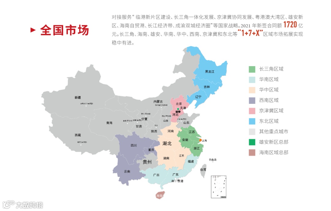 转向高质量发展,是新时代中国经济的鲜明特征,城市群、都市圈、新型城镇化建设是现代化的必由之路。上海建工不断强化“国家队”意识,主动对接和服务上海自贸区临港新片区、长三角一体化、粤港澳大湾区、雄安新区、海南自贸港、京津冀协同发展、东北振兴、成渝双城经济圈、长江经济带等国家战略发展区域,业务覆盖全国34个省级行政区的150多座城市。