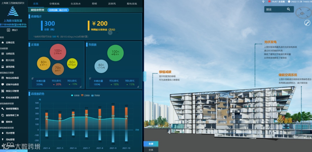 在“智慧运维”方面,上海图书馆东馆,作为全球世界级城市最大的复合型公共图书馆,面积达11.5万平米,上海建工运用自主研发、国内领先的智慧建造与运维工业互联网平台,顺利实现建造到运维的BIM模型转化,以数字孪生技术开展大型图书馆智慧运维的行业首次实践。