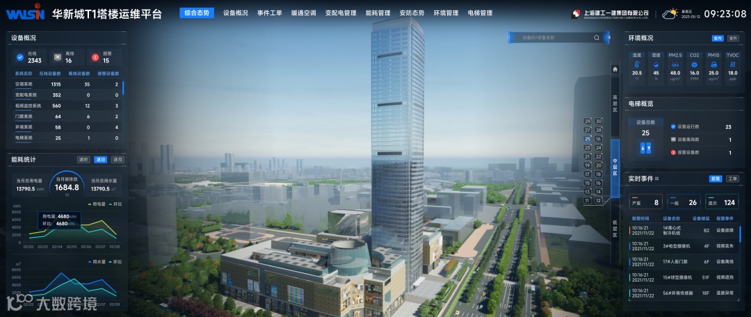 目前,南京华新城T1塔楼智慧运维平台已基本完成研发,计划在今年6月正式交付使用。数字孪生智慧运维平台启用后,南京华新城T1塔楼将大幅提升建筑运维效率、能源使用效率以及资产管理水平,在LEED&WELL双金级认证的基础上,有望进一步成为绿色节能标杆楼宇。一建集团将再接再厉,通过对智慧运维平台的不断升级,努力践行建筑全生命周期服务商理念。