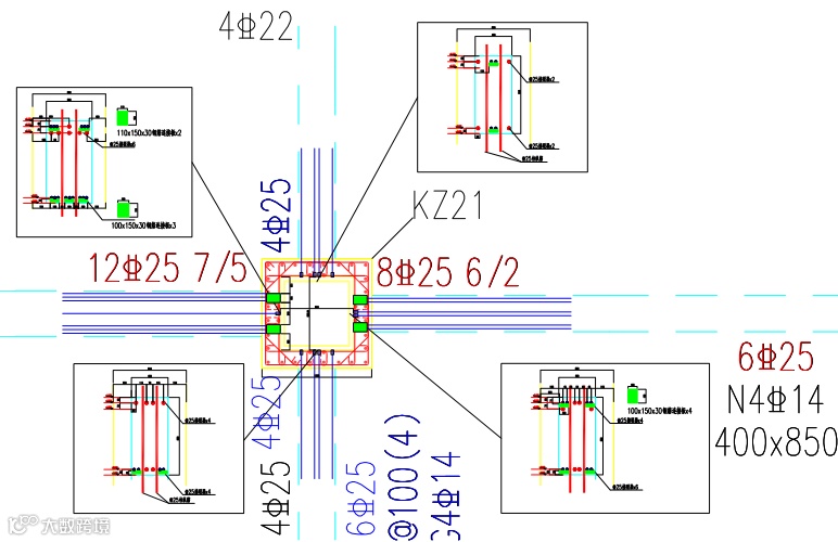 要降低施工难度、解决平衡项目的进度、质量和安全,就必须从技术创新角度入手,项目部把问题想在前面,把工作做在前面,做到备豫不虞,为后续全面顺利施工赢得主动权。2号、3号科研楼的地下室一层区域由钢筋混凝土框架结构体系转换为钢结构框架体系,±0.000板区域混凝土框架柱与钢框架下插矩形钢骨连接节点复杂。为确保矩形钢骨同地下一层混凝土梁有效连接,项目部对该区域所有梁柱节点展开深化工作,利用在钢骨上增加连接板、直螺纹套筒的形式,解决混凝土梁钢筋有效连接问题。同时为降低操作难度,将结构双向钢筋在深化过程中作上下错位布置,避免现场施工中钢筋过密导致施工难度增大的问题。