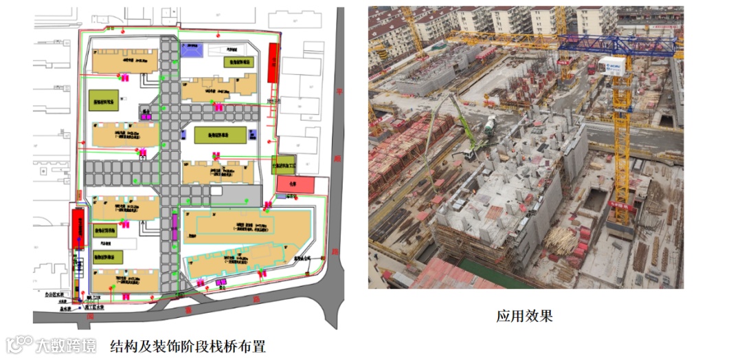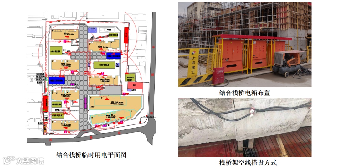 项目将栈桥从基坑阶段保留至装饰装修阶段,正好衔接了正式水电的供应。通过临水临电的优化布置以及合理分配栈桥的使用时间,成功避免了二次移位翻浇,节约了工期和成本。