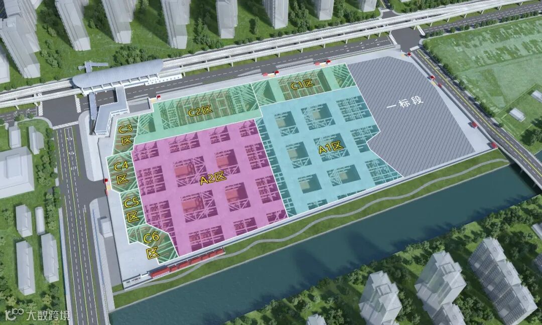 项目南侧、西侧双侧均紧邻地铁,特别是南侧C3~C6的4个基坑,最近处距离地铁12号线仅13米,变形控制要求高。东临曹家沟,北侧为在建住宅,东西两侧均有大型小区。两个地铁连通道需要待C3、C5基坑回筑完成后开挖连接至现有地铁结构。施工过程中要求人流不间断,地铁不停运,对施工组织要求很高。