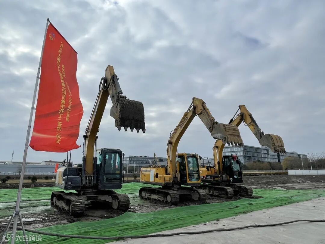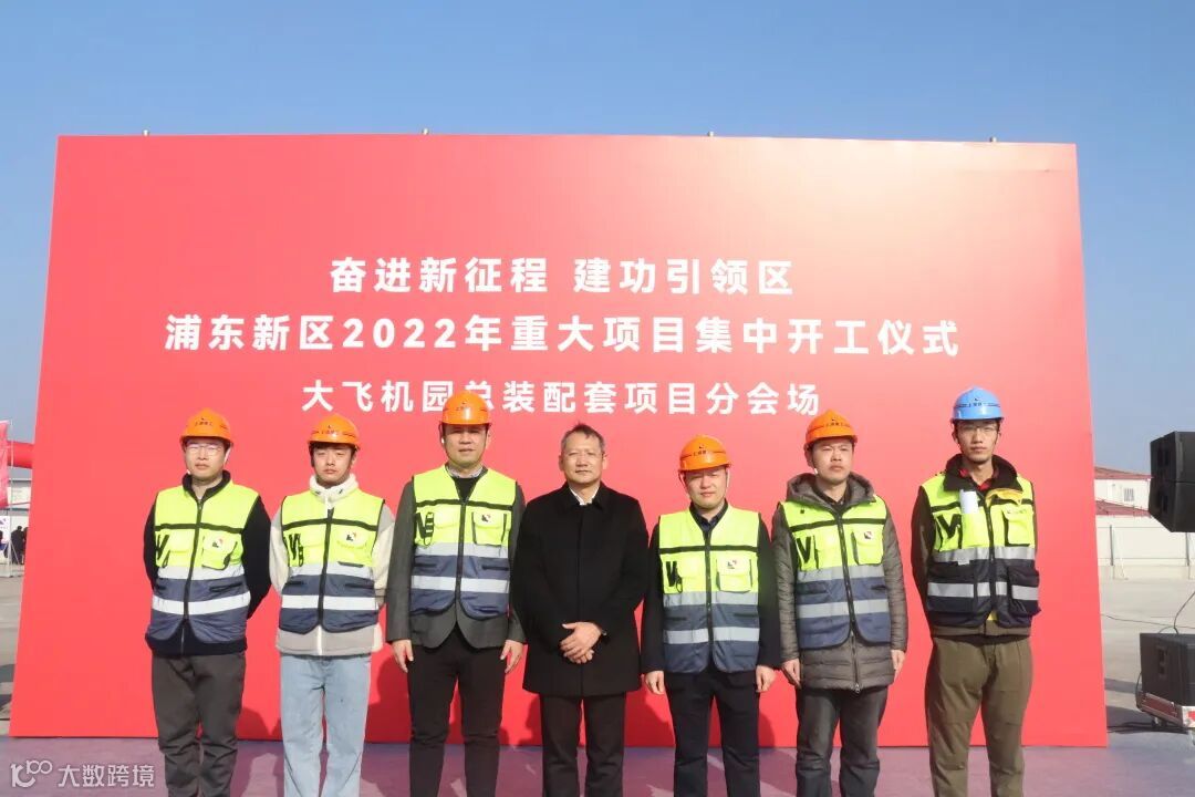 1月4日上午,浦东新区重大工程集中开工仪式临港新片区分会场在上海一建承建的临港大飞机产业园三期桩基工程现场举行,临港集团党委书记、董事长袁国华,一建集团党委副书记、总裁俞建强等领导参加开工仪式。