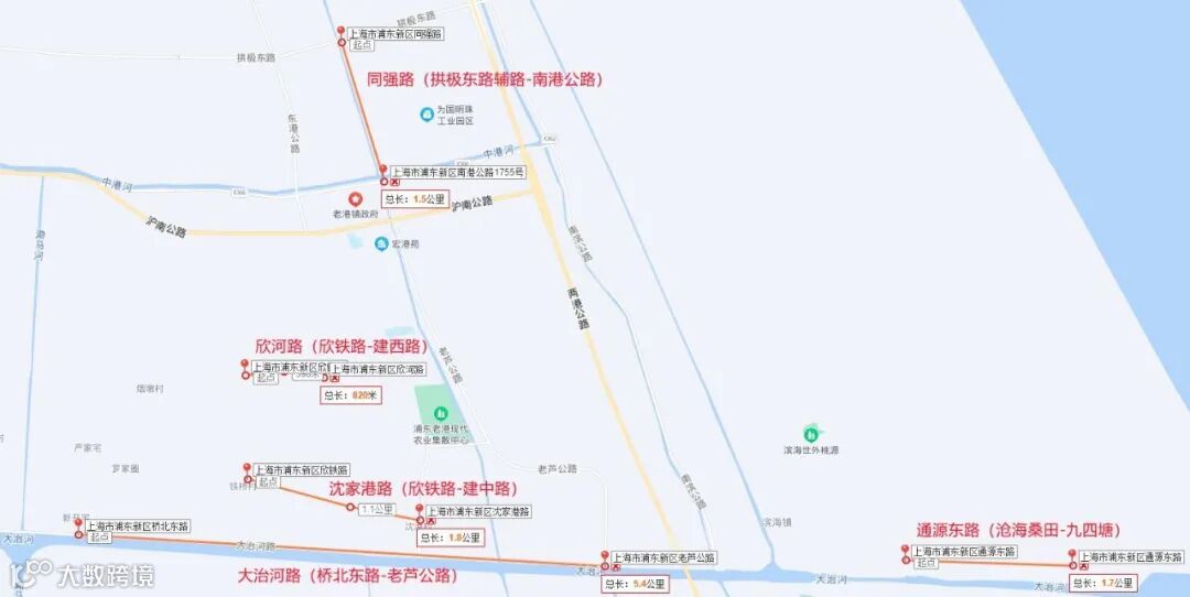 上海市老港镇农村公路提档升级项目上包含5条道路,分别是大治河路(桥北东路~老芦公路)、同强路(南港公路~拱极东路辅路)、沈家港路(欣铁路~建中路)、通源东路(沧海桑田~九四塘)和欣河路(建西路~欣铁路)。
