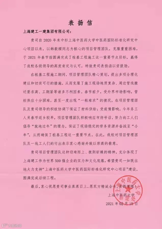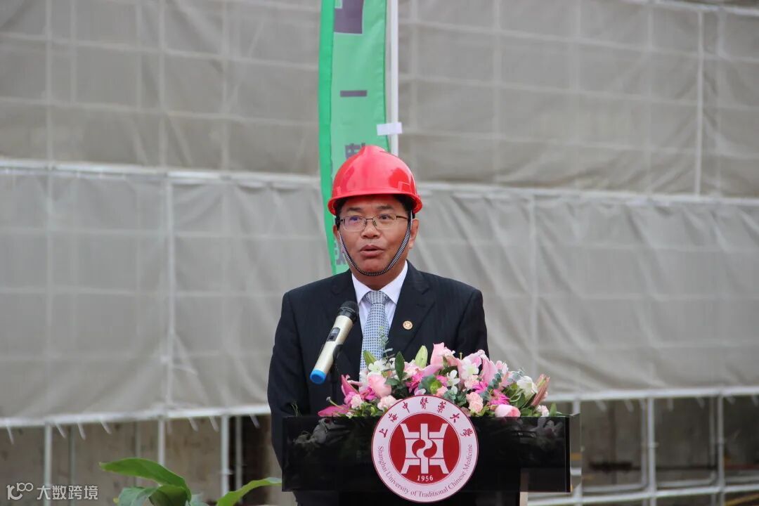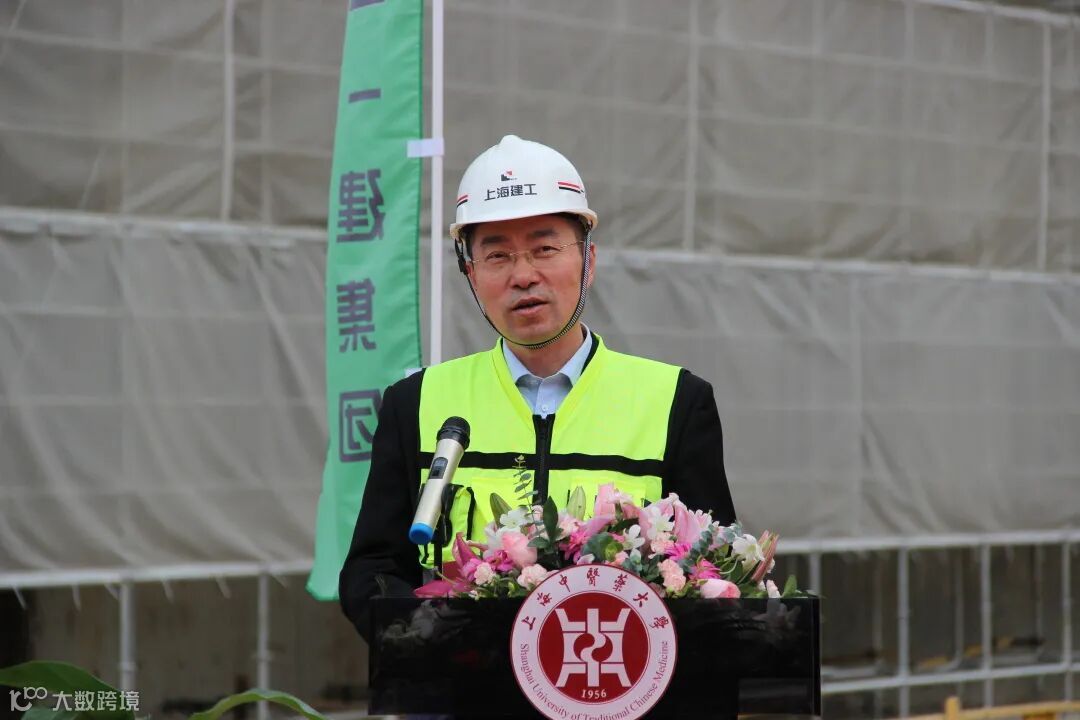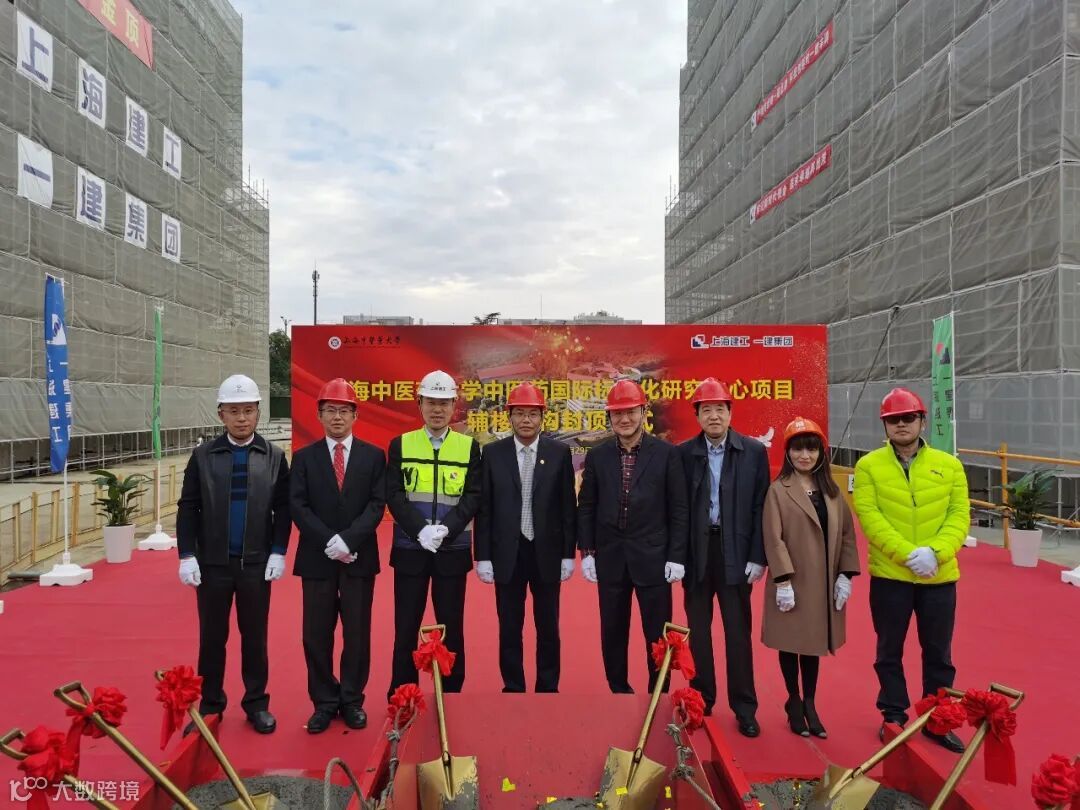 上海中医药大学党委书记曹锡康,校长徐建光,副校长王拥军,一建集团党委委员、副总裁顾红羽等领导出席了上海中医药大学中医药国际标准化研究中心项目辅楼结构封顶仪式。