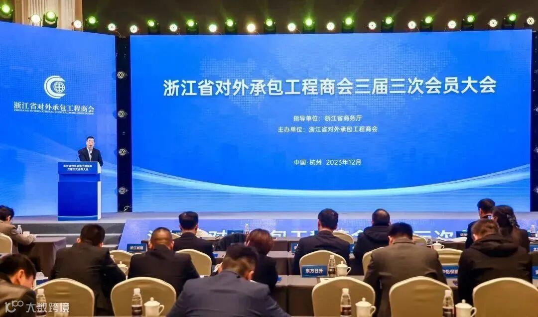 12月15日下午,浙江省对外承包工程商会三届三次会员大会在浙江开元名都大酒店成功召开,承包商会房秋晨会长应邀出席会议并致辞。浙江省商务厅总经济师朱军,浙江省商务厅原一级巡视员胡潍康,浙江省对外承包工程商会会长吴飞,以及商会会员企业代表100余人出席会议。会议由商会秘书长何云和副秘书长朱宇虹主持。