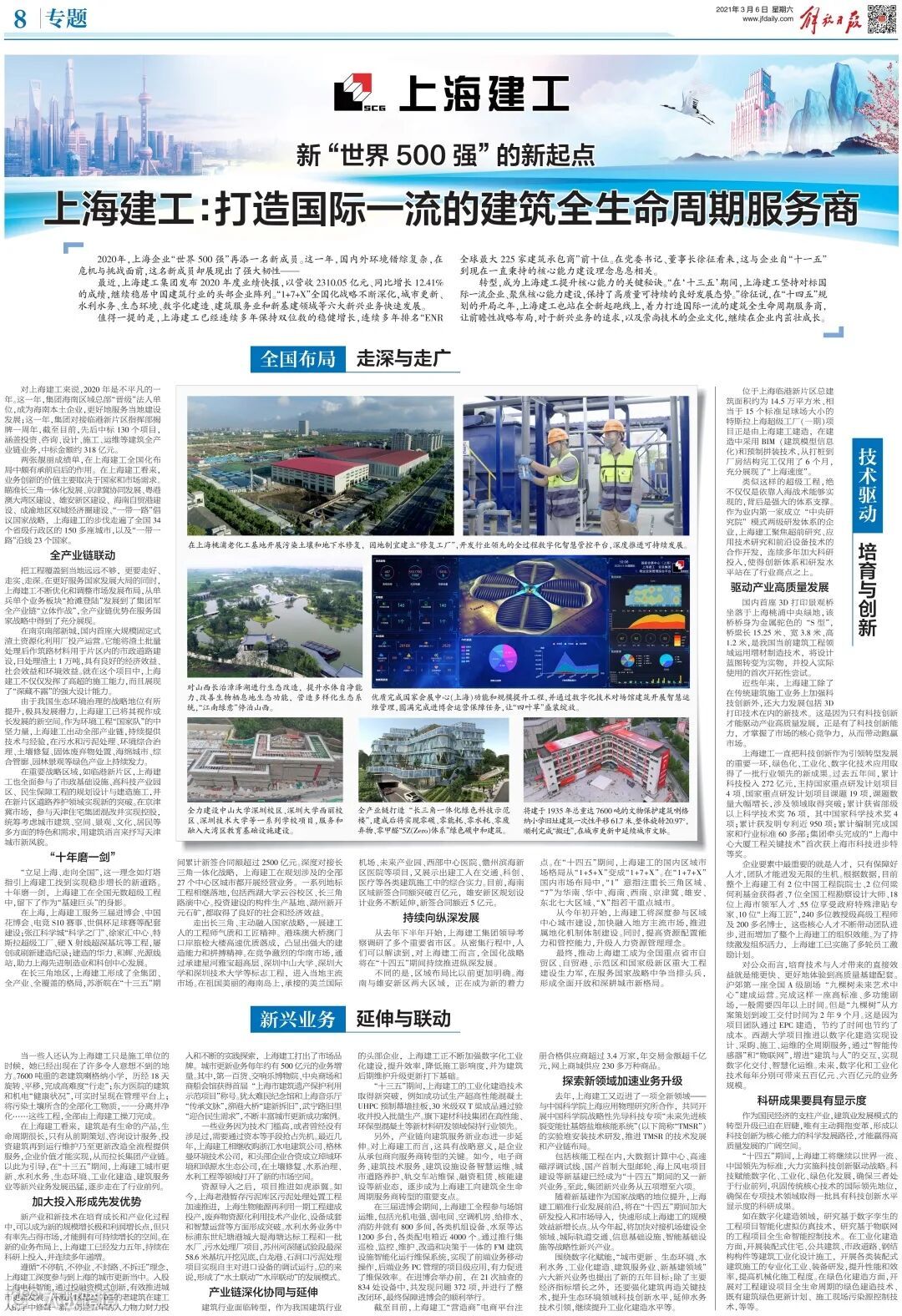 转型,成为上海建工提升核心能力的关键秘诀。“在'十三五'期间,上海建工坚持对标国际一流企业、聚焦核心能力建设,保持了高质量可持续的良好发展态势。”徐征说,在“十四五”规划的开局之年,上海建工也站在全新起跑线上,着力打造国际一流的建筑全生命周期服务商,让前瞻性战略布局,对于新兴业务的追求,以及崇尚技术的企业文化,继续在企业内茁壮成长。